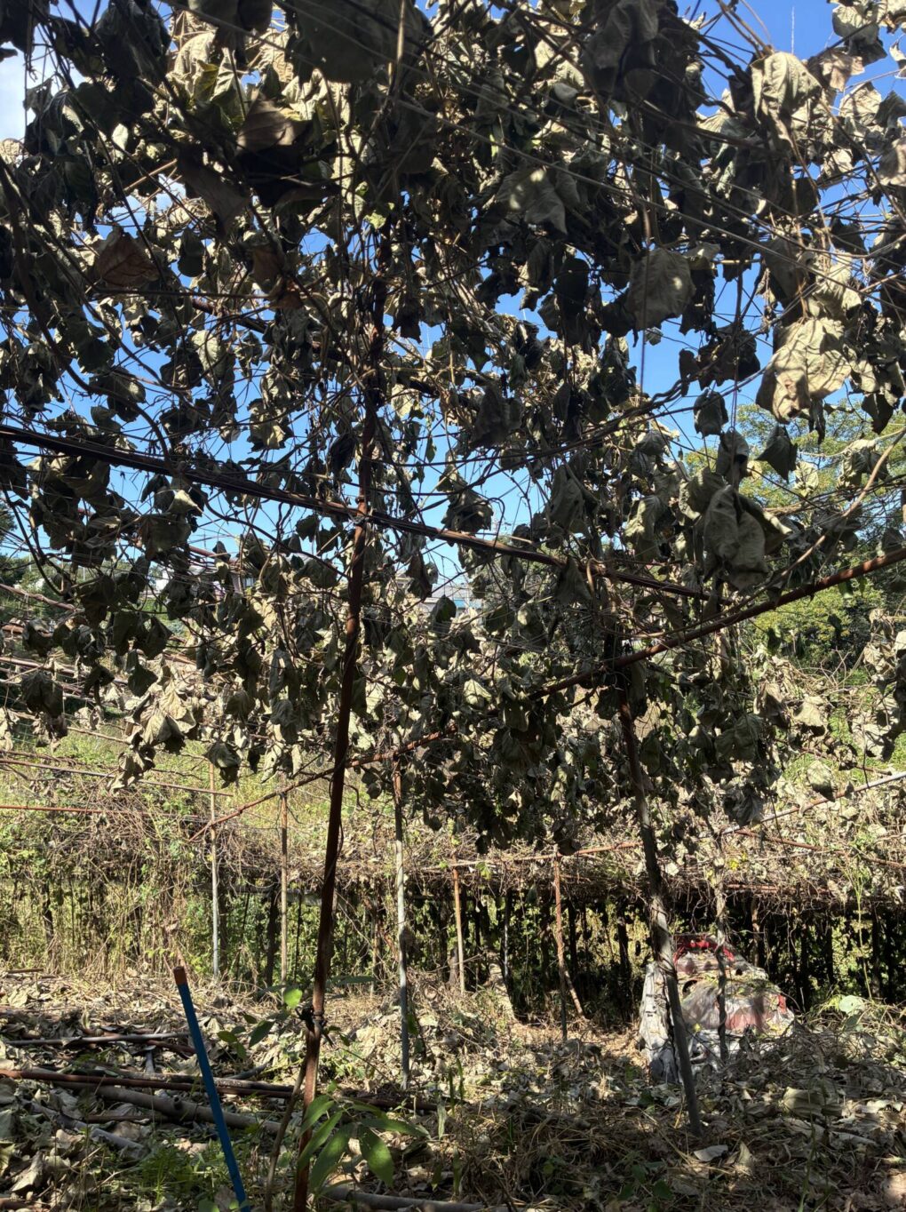 ピーカン畑のメンテナンスが落ち着いたので、ぶどう棚の手入れを再開しています。古い木の中にはだいぶ弱っているものも多くて、今年は着色や味の乗りがあまり良くないものもありました。時間をかけて少しずつ更新していこうと思います。棚の針金がゆるん... -