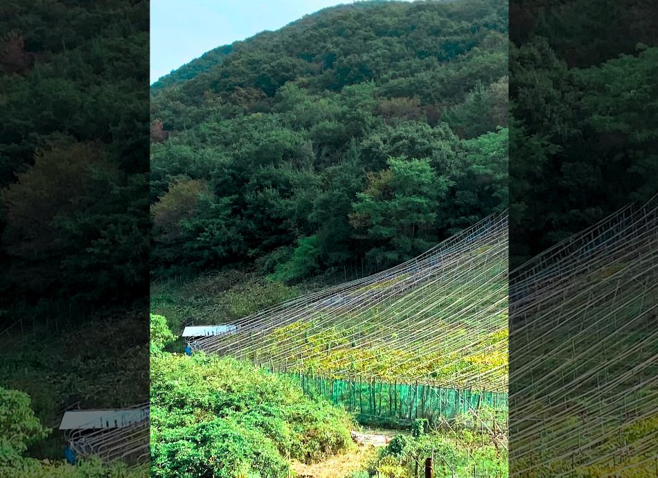 ⑤信号を渡り、『ぶどう直売所』を右に見ながらまっすぐ登ります。